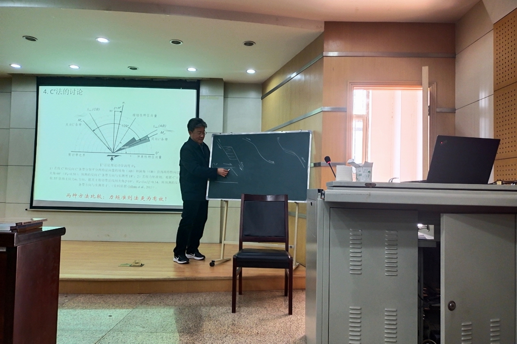 侯泉林以严谨务实的态度、风趣幽默的语言系统讲述了构造地质学近年来的前沿进展,以岩石变形准则为例介绍了如何从经典理论中发现科学问题,介绍了岩石流变方面的相关概念、进展以及运动学涡度的使用方法和存在问题,讲解了有限应变测量的基本原理和方法以及构造岩石学的相关研究进展,最后提出构造作用本质上是岩石和矿物对应力作用的响应,包括物理响应和化学响应,进而用数学方法进行表达,构造地质学的发展方向应是与物理学、化学乃至数学等基础学科的深度融合。侯泉林在讲座过程中多次引用身边实例鼓励大家要发扬理工精神、珍惜学习机会、努力奋斗、成长成才,勉励同学们要勤于思考、加强逻辑训练、善于发现和提出科学问题、培养创新思维。本次讲座为构造地质学课程教学和科学研究提供了新的思路和启发,开阔了同学们的专业视野,激发了学习热情,为推动地学领域相关研究起到了积极的促进作用。