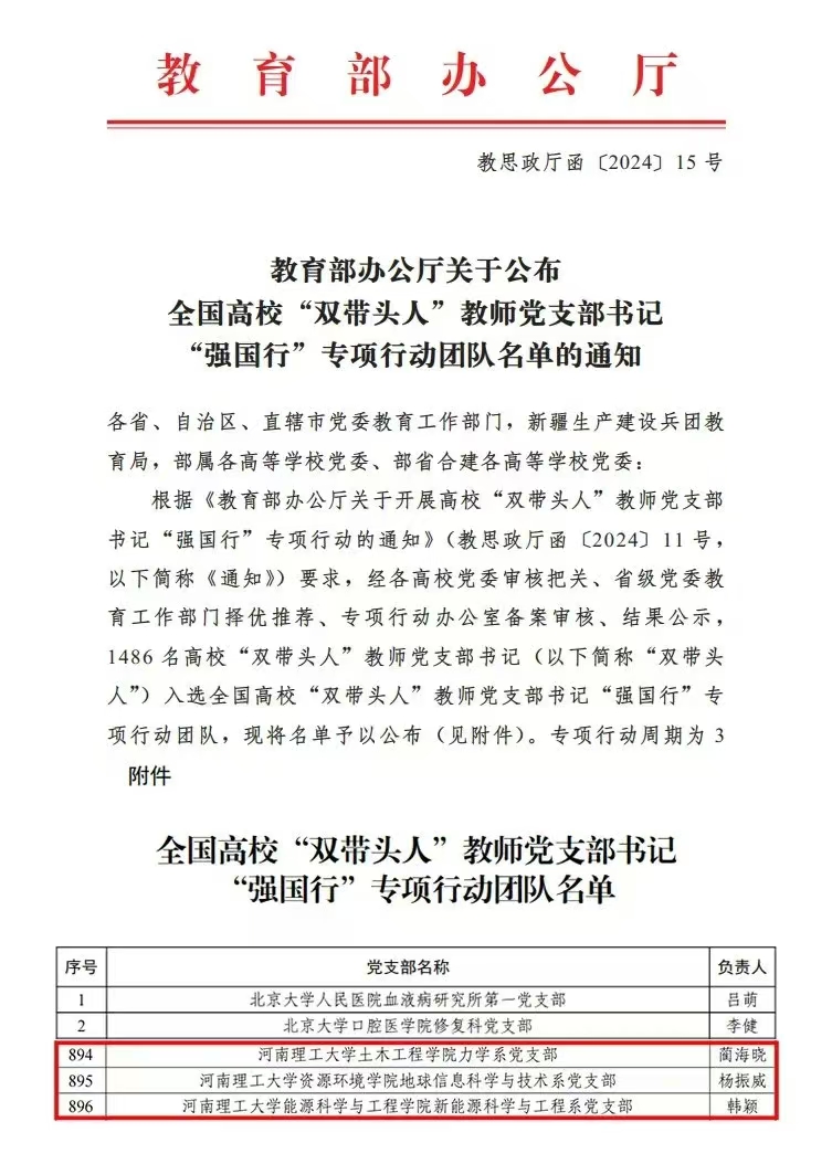 喜报|色情书 地球信息科学与技术系党支部入选全国高校“双带头人”教师党支部书记“强国行”专项行动团队