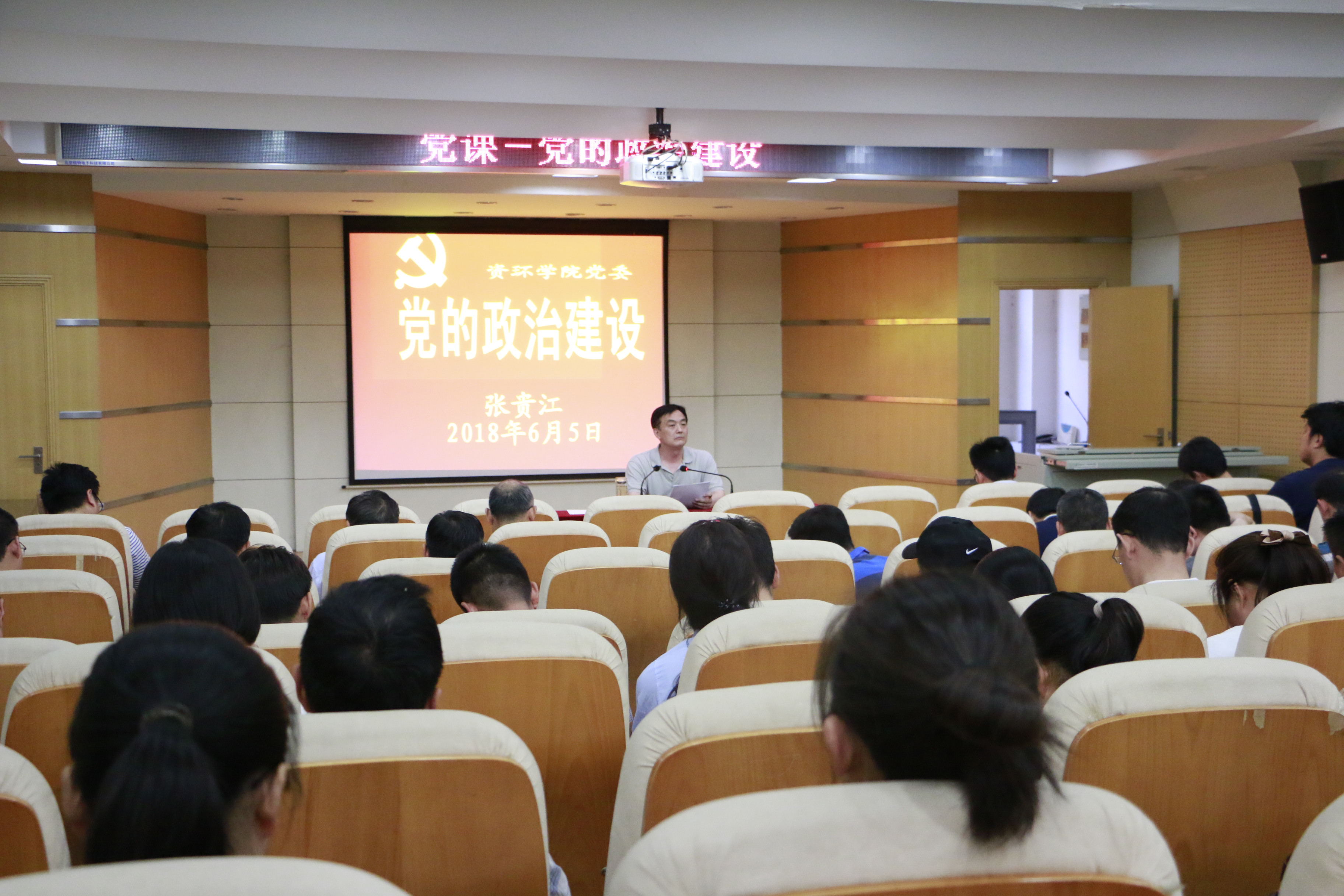 为深入学习领会习近平新时代中国特色社会主义思想,扎实推进“两学一做”学习教育常态化制度化,按照学校党委要求,6月5日下午,院党委书记张贵江在资环楼影像厅以《如何加强资环学院党的政治建设》为题向全体教工党员上了一堂深刻的党课。整场党课学习氛围浓厚,党员们仔细聆听,认真笔记,深入思考。