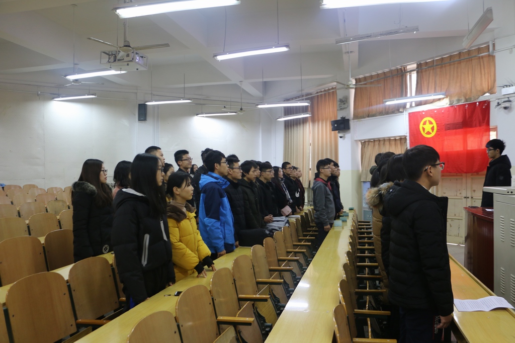 在资环楼103室隆重举行资环学院2018年度新团员入团宣誓仪式。院团委委员和入团积极分子共40余人参加本次入团宣誓仪式。宣誓仪式由团委委员赵云龙主持。
