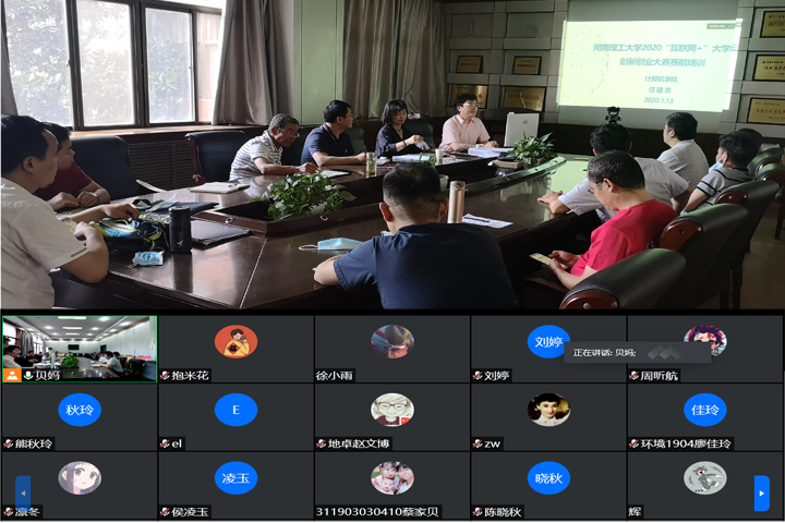 6月14日下午,资环学院采取线上线下混合模式举办了“互联网+”大学生创新创业大赛的指导讲座,邀请到曾获得“互联网+”大学生创新创业国家级奖项的计算机学院任建吉老师担任讲师,讲座由该院副院长郑德顺主持,各系(室)主任和二十余名教师线下参会,近二百名学生线上聆听。