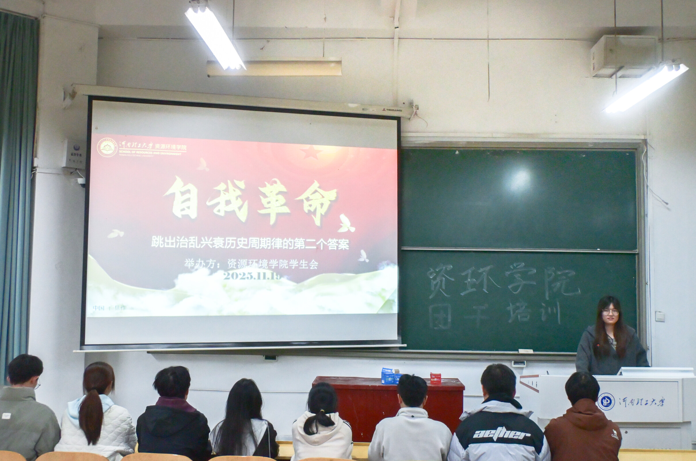 为深入学习贯彻习近平总书记关于党的自我革命的重要论述,切实加强基层团组织建设与团干部队伍综合素养的提升,11月16日,色情书 以“自我革命:跳出治乱兴衰历史周期率的第二个答案”为主题的团干部专题培训在104教室开展。培训由院学生会策划,院科创中心策划部副部长梁悦担任主讲,团干部代表共同参与学习。