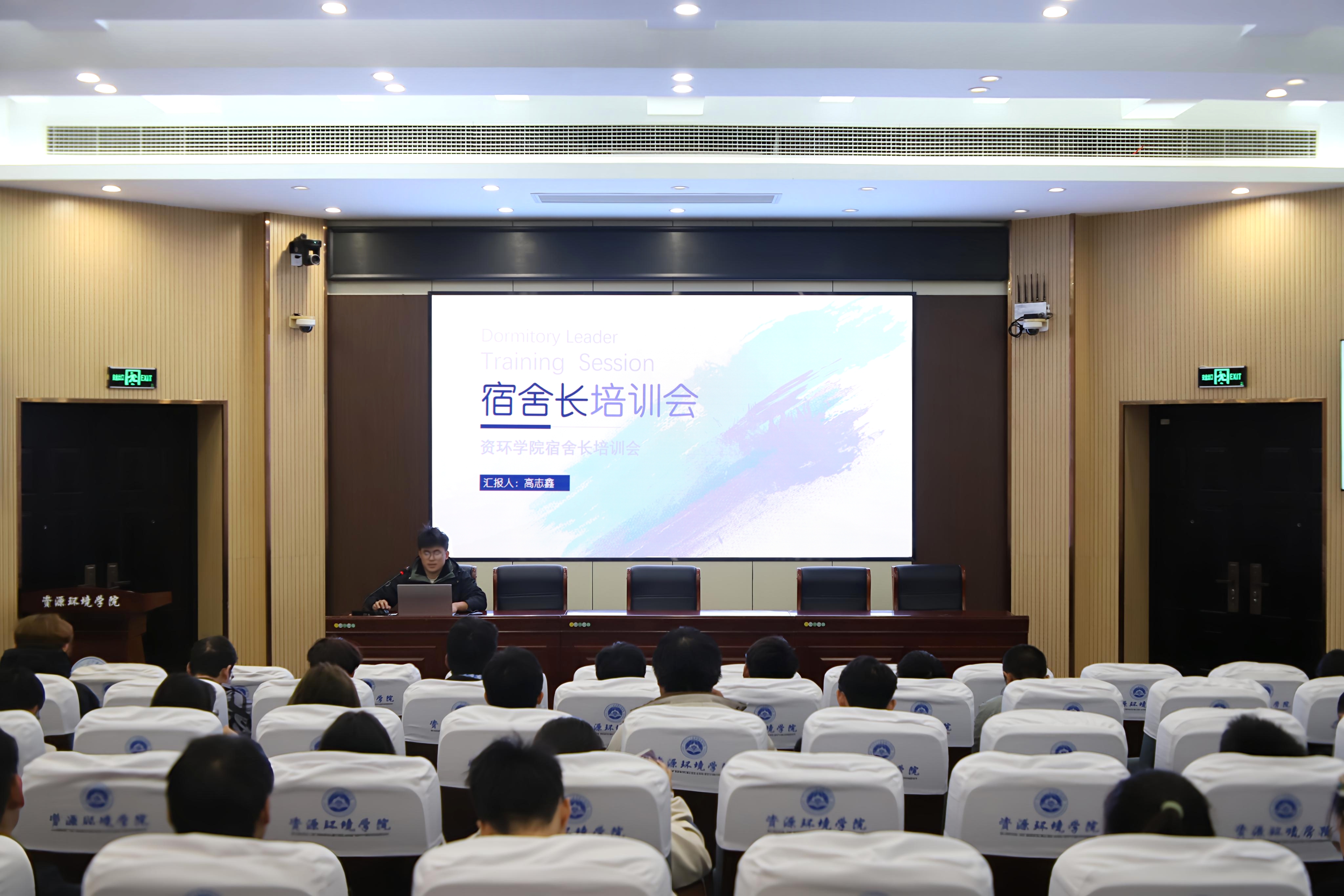 在资环楼103学术报告厅举办宿舍长专题培训。2025级宿舍长全员参与,学院邀请前班长联席会主席高志鑫主持培训。