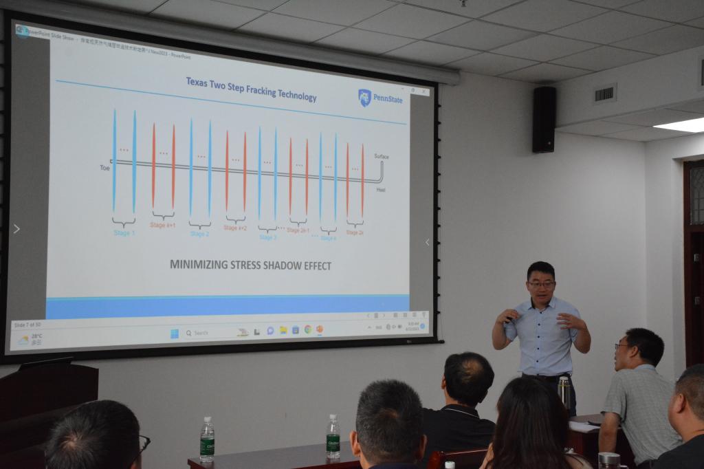 报告会上,刘世民教授从国际视角介绍了非常规天然气的发展前景,讲述了美国、加拿大等发达国家近年来在非常规天然气开发上的研究成果。重点介绍了美国页岩气开发储层压裂改造技术的发展历程,最新的增产改造技术,特别是宾夕法尼亚马塞勒斯页岩储层(Marcellus shale gas)的最新生产情况。讲述了国际上煤炭地下气化技术的最新研究思路和所面临的挑战。最后分享了其团队在CO2地质封存领域的最新研究成果。本次报告聚焦非常规天然气开发国际前沿理论和技术,内容丰富,学术性强,研究方法新颖。参会师生对国际非常规天然气开发新进展有了深入的了解和认识,拓宽了师生们的国际视野,激发了新的研究思路。