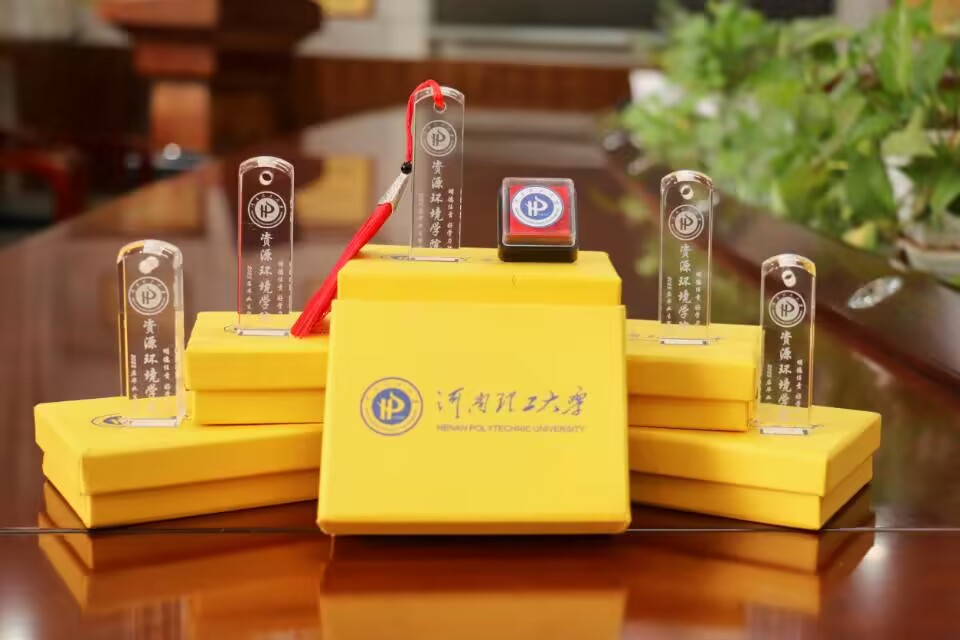 印章章体正面镌刻着河南理工大学的校徽、校风、校训以及“色情书