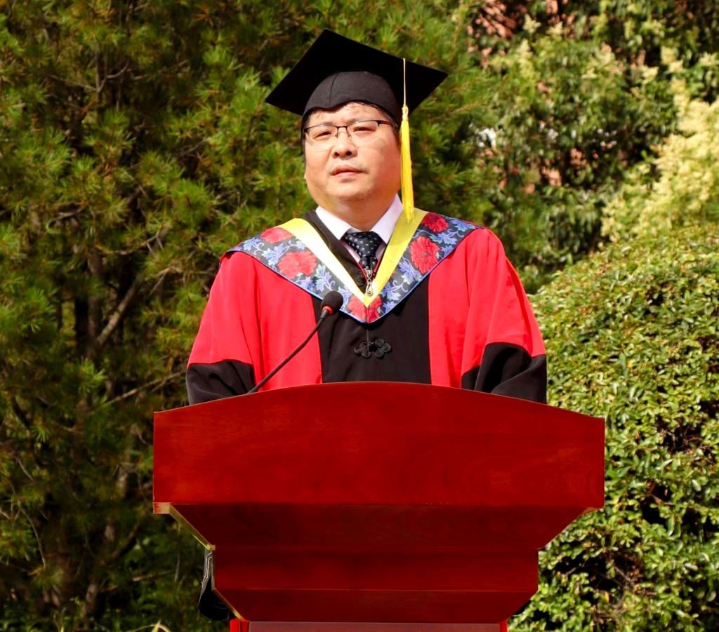 院长金毅向2023年毕业生送上临别寄语。他首先向圆满完成学业的同学们致以热烈祝贺,向辛勤培育大家成长的师长和家人致以诚挚感谢。他谆谆叮咛毕业生,要永葆“历尽千帆,仍存少年凌云志”的豁达从容,把学习作为终身习惯,把奋斗作为终身追求,坚定理想信念,立大志,明大德,笑对人生;要锤炼“千磨万击还坚劲,任尔东西南北风”的自强品格,趁年轻,加油干,忍受孤独,自强成长,勇做走在时代前面的奋进者、开拓者、奉献者。他希望毕业生能够乘风破浪,大胆奔赴,学院作为毕业生的坚实后盾力量,永远与大家同在!