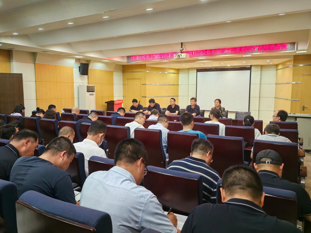 会上,学院党委书记桑俊勇对如何抓好学习贯彻习近平新时代中国特色社会主义思想主题教育进行了再部署、再推进,对扎实开展主题教育提出了三点要求:首先要按照主题教育工作方案,切实提高政治站位,充分认识此次主题教育的重大意义。其次,锚定目标任务,把握“学思想、强党性、重实践、建新功”的深刻内涵,把开展主题教育与学院工作结合起来,推动主题教育走深走实。再次,坚持在抓重点和破难点中破解发展瓶颈,确保高质量发展提质提效。桑俊勇强调,要结合实际全面对标落实,把理论学习、调查研究、推动学院发展、检视整改、建章立制一体推进、贯穿始终;班子成员要领头调研,尽快确定调研主题,认真开展调查研究,找准真问题、真解决问题。