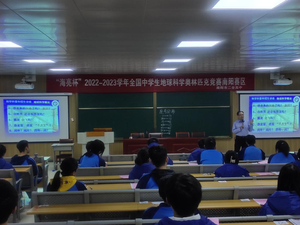 教师孙凤余带队赴南阳市第二完全学校高级中学开展科普和招生宣传活动。南阳市第二完全学校高级中学、南阳市第二中学校等学校100余名师生参加了活动。