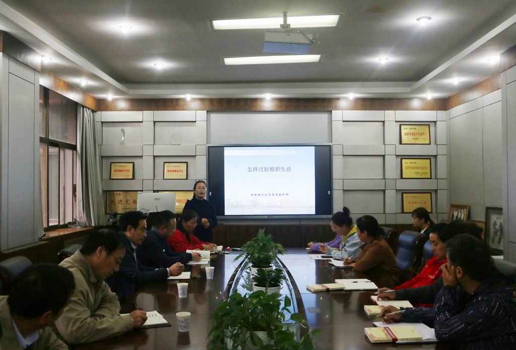 为进一步提高党支部书记的党建业务能力,解决基层党建工作实际问题,10月13日下午资环学院在二楼会议室举行党支部书记培训会,由校党委组织部副部长张红霞做《怎样过好组织生活》的专题讲座,资环学院各党支部书记、支部委员和党建相关工作人员参加培训,会议由该院党委副书记许传阳主持。