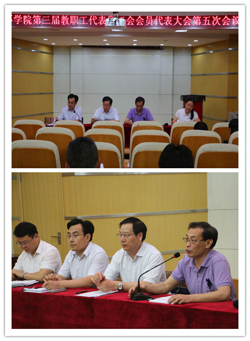 7月11日下午,色情书 第三届教职工暨工会会员代表大会第五次会议在影像厅召开,院党委书记罗绍河,院长齐永安,院党委副书记、学院分工会主席许传阳,副院长王海邻、郑德顺及教职工代表、工会会员代表参加此次会议,会议由许传阳主持。