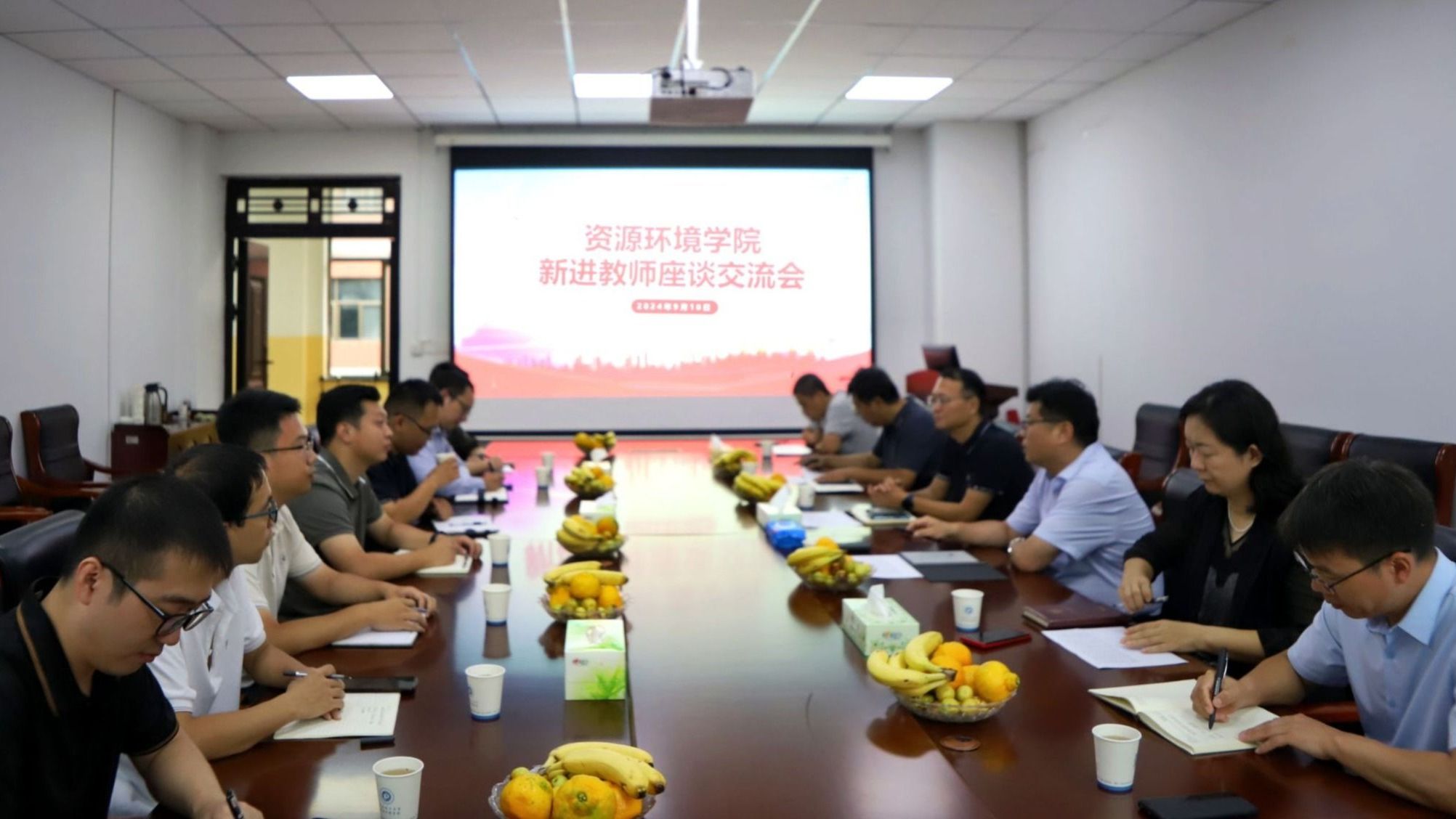 在资环楼303会议室召开新进教师座谈会。学院领导班子成员、部分教师代表及学院新进教师一起欢聚一堂、座谈交流,共同庆祝第40个教师节的到来。座谈会由院工会主席、党委副书记孙付伟主持。