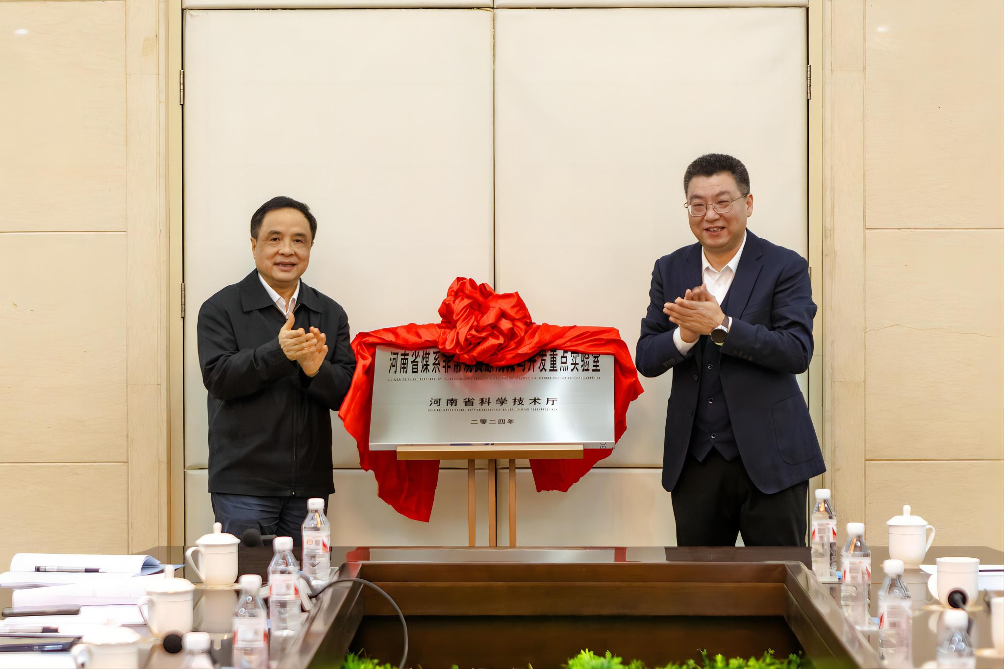 校长赵同谦和中国工程院院士彭苏萍为重点实验室揭牌