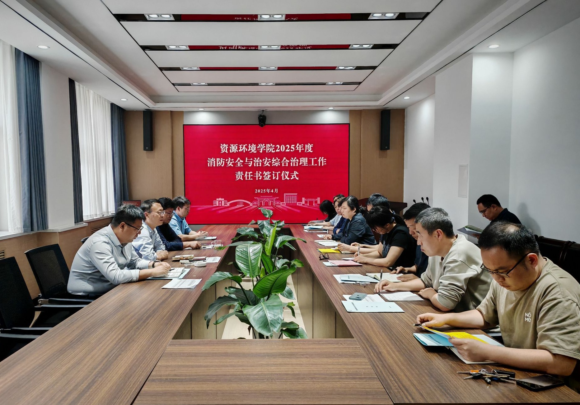 在资环楼212会议室,举行资环学院2025年度消防安全与综合治理工作责任书签订仪式。仪式由学院党委副书记孙付伟主持,院领导班子成员、各系室党支部书记及主任参加此次签订仪式。