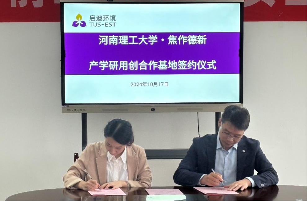 与焦作市德新生物科技有限公司“产学研用创合作基地”签约及揭牌仪式在德新生物举行。学院副院长高迪、德新生物总经理张莹及环境工程系、德新生物相关负责人共同出席了此次签约会议。