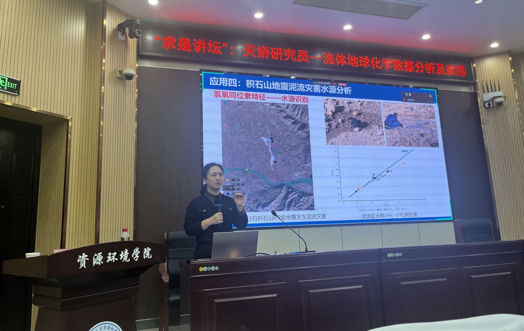师生开展了以《流体地球化学在地震预测中的研究与应用》为题的学术报告。学院近百余名师生参与了此次交流。