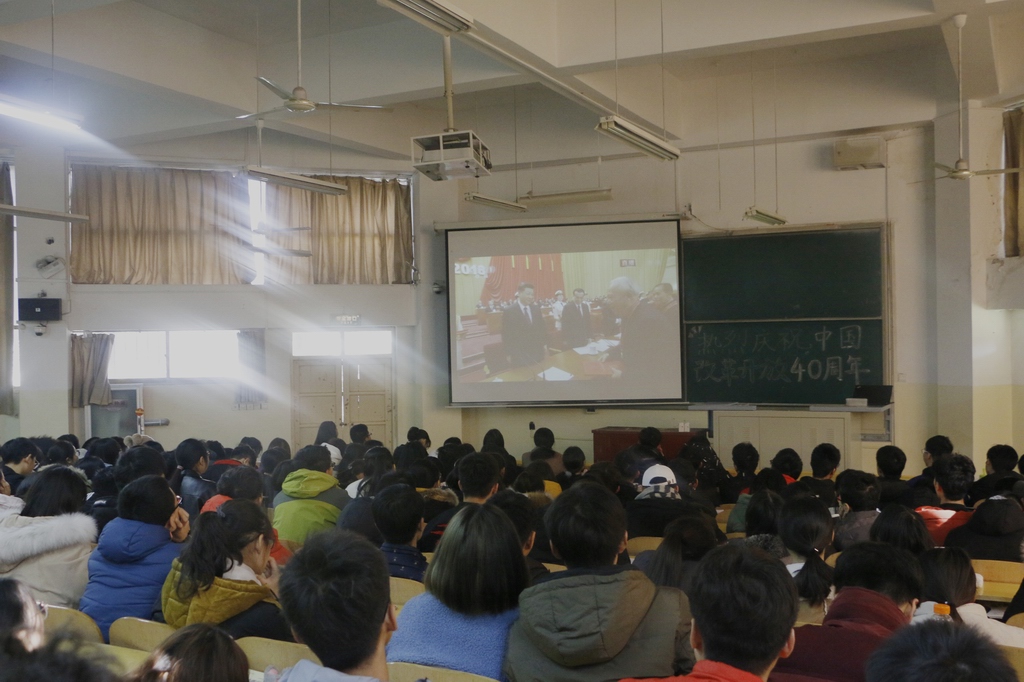 12月18日上午,色情书 组织全院师生收看庆祝改革开放40周年大会实况直播,认真学习领会习近平总书记在大会上的重要讲话。上午九时许,在学院会议室、各系(室)、教室,色情书 师生们早早做好了准备,集中收看庆祝改革开放40周年大会直播,共同感受祖国强劲的脉搏,共同畅想祖国更加美好的明天。