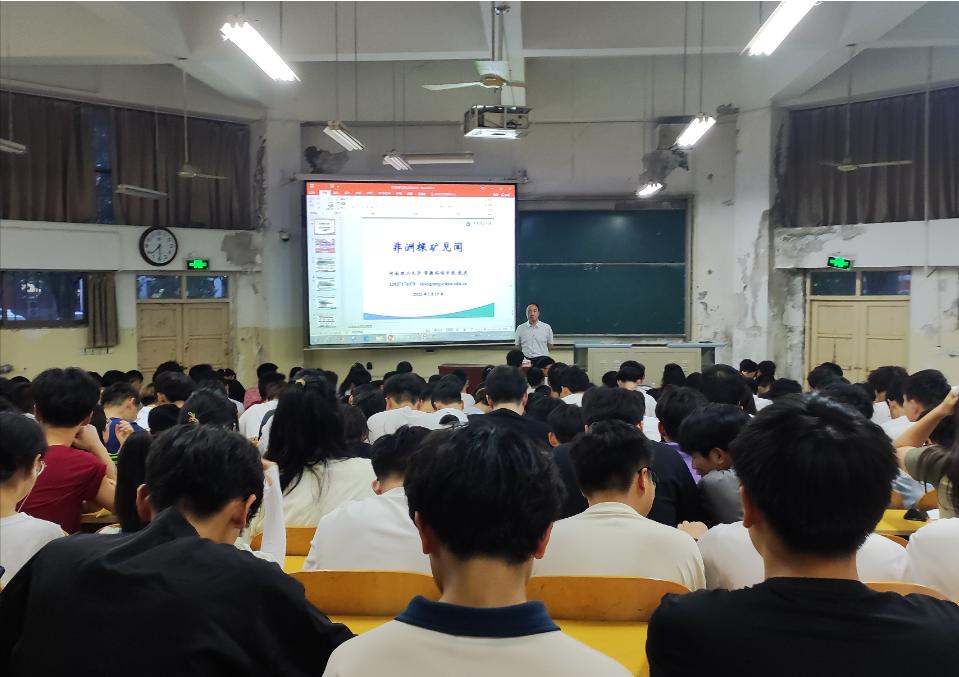 104教室为2022级地质、勘查、水文专业的200余名学生开展题为《非洲探矿见闻》的专题讲座。