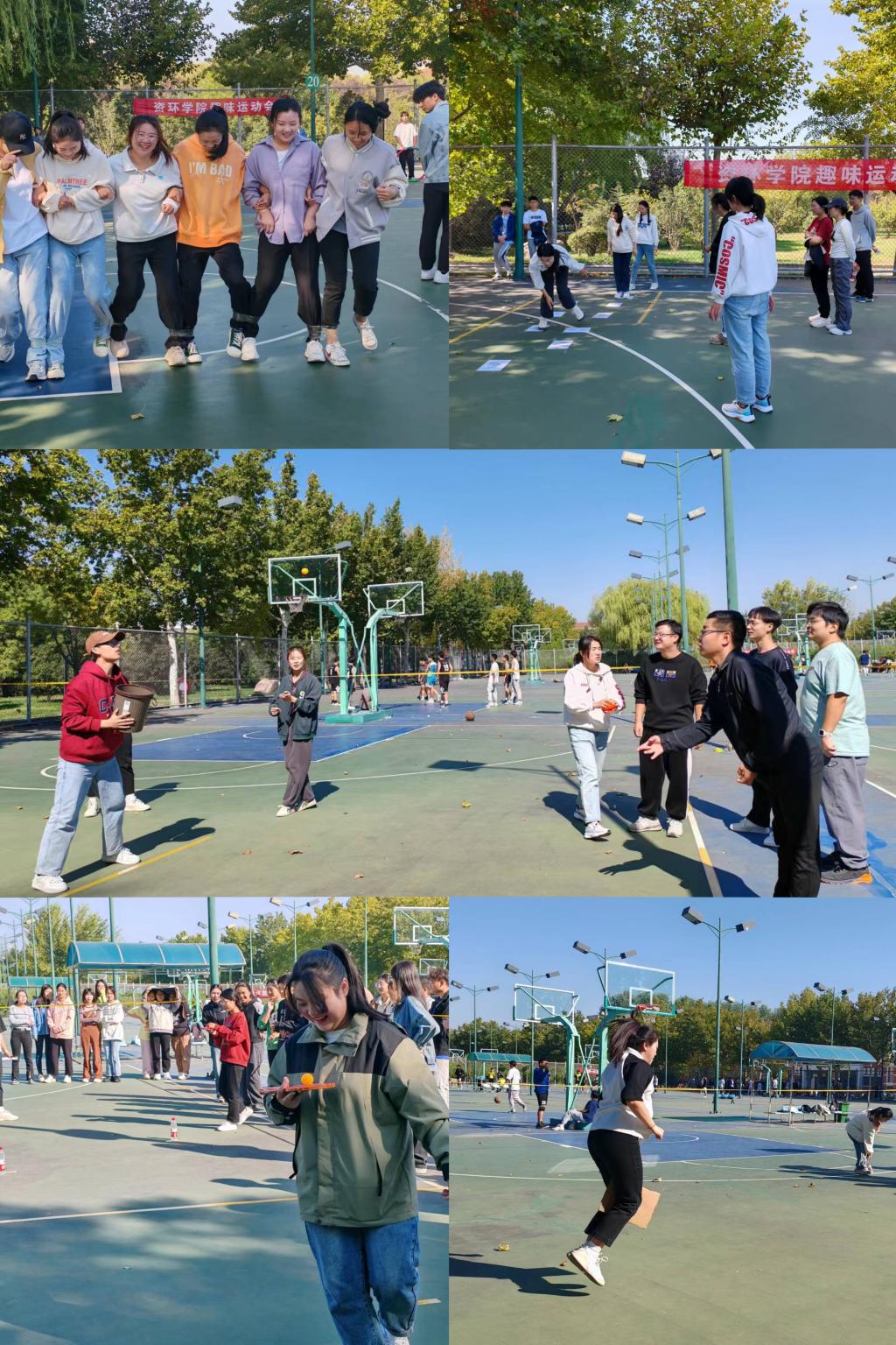 研究生会在西区篮球场举行了以“团结友爱不言弃,趣味比拼创佳绩”为主题的趣味运动会。