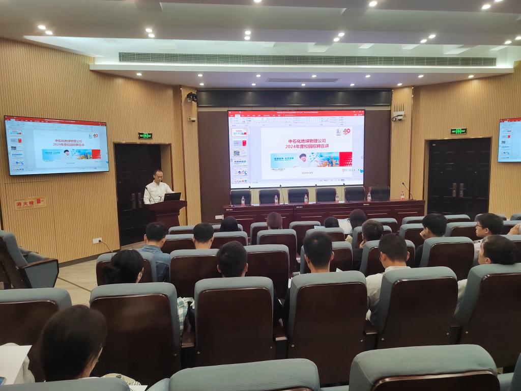 与企业之间的友好合作与交流,全面做好学生就业服务工作,11月1日下午在资环楼第一学术报告厅,中石化地球物理有限公司举办了2024届毕业生专场宣讲会。地质工程、水文与水资源、资源勘查等专业学生参加了本场招聘宣讲会。