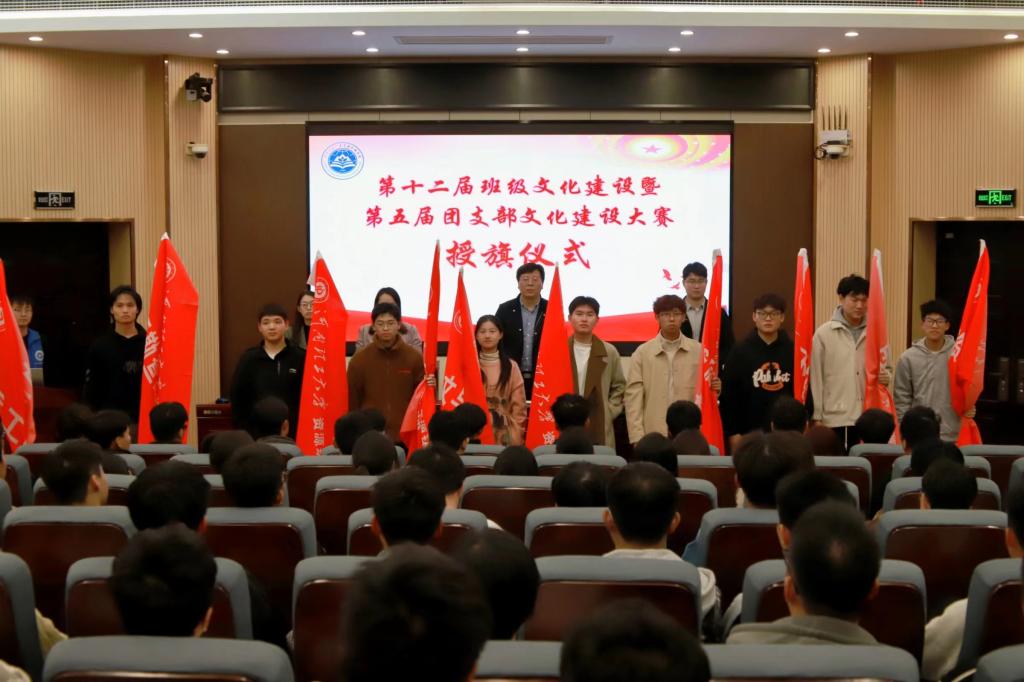 会议在团歌声中正式开始。首先,由张娜宣读活动评比要求与办法,武宝宝对本次大赛的开展提出具体要求。接着,举行班旗授予仪式,2023级各班级学生代表上台接旗。最后,孙付伟发表讲话,他深刻阐述了班级文化建设的重要性,并期望每个同学都能在活动中有所收获、有所成长,同时勉励大家要勤奋学习,严以律己,不负火热青春与美好年华。