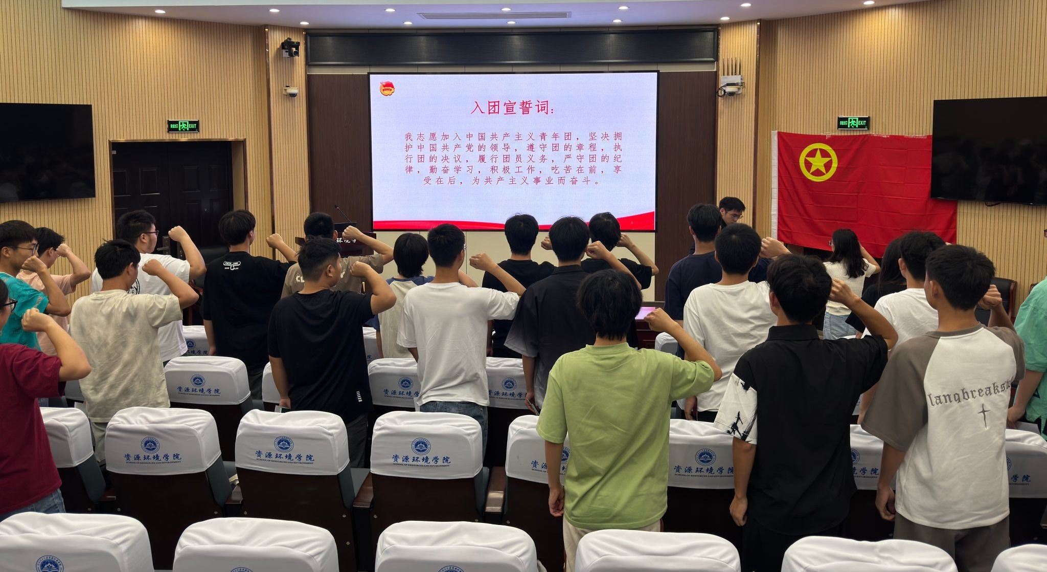 在资环楼第Ⅰ学术报告厅举行了2024年新团员入团仪式。院团委副书记王梦利、全体新入团团员和部分老团员代表参加了会议。