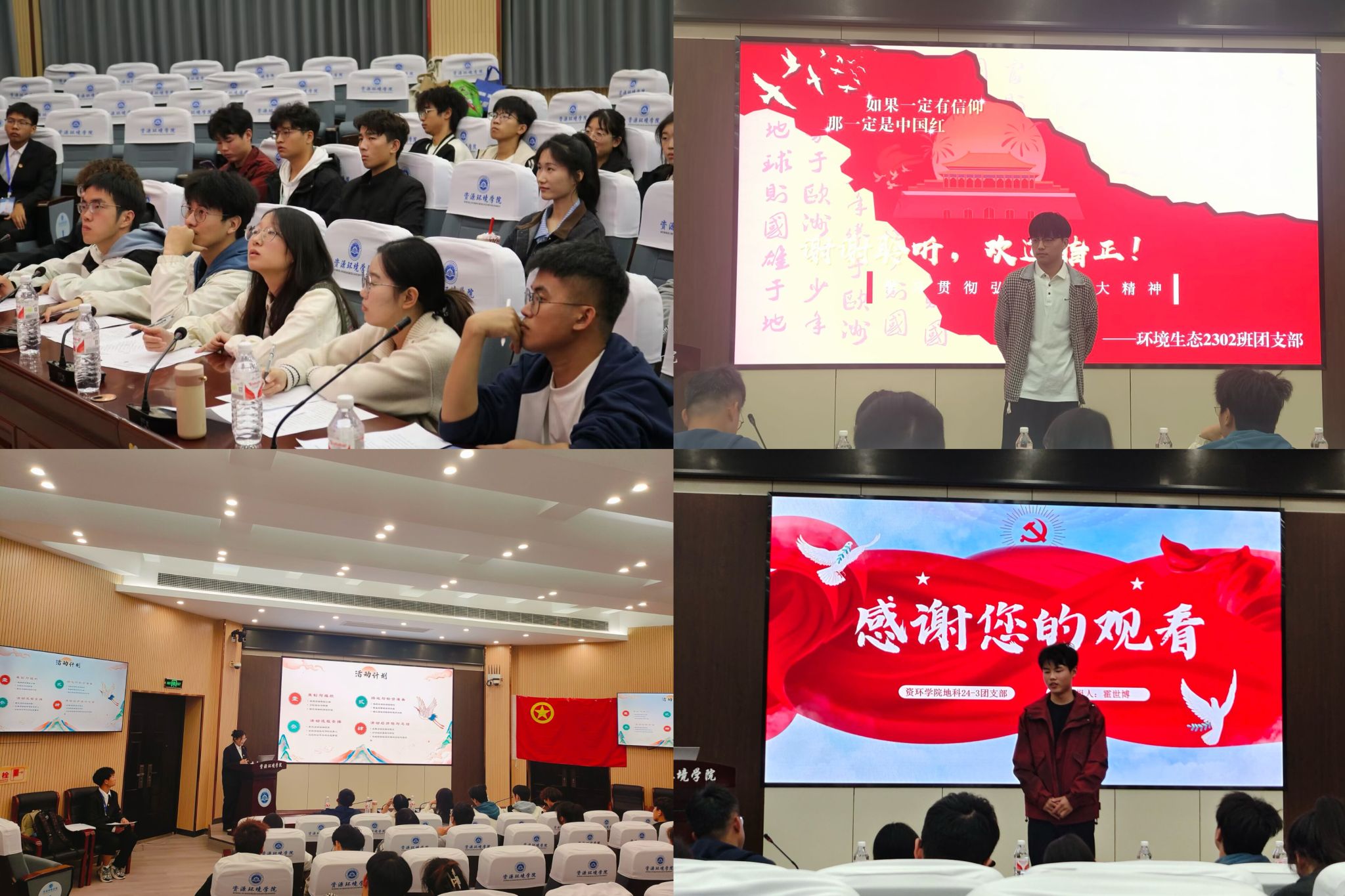 本次活动以“学习贯彻二十大,挺膺担当建新功”为主题,学院各团支部充分结合支部实际,紧密围绕主题开展了内容丰富、形式多样的团日活动,经过对活动材料的初评,九个团支部获得现场展示资格,最终,环境23-2团支部、勘查清洁24-2团支部荣获一等奖并推荐参加校级决赛,水文23-3团支部、地科24-1团支部荣获二等奖,地质24-2团支部、勘查战略24-2、环境工程24-2团支部荣获三等奖。接着,在团支部上讲坛活动中,各团支书结合近期学习内容与传统文化,通过严格的内容审查与精心准备的课件,向大家展示了一场又一场精彩的团课内容。
