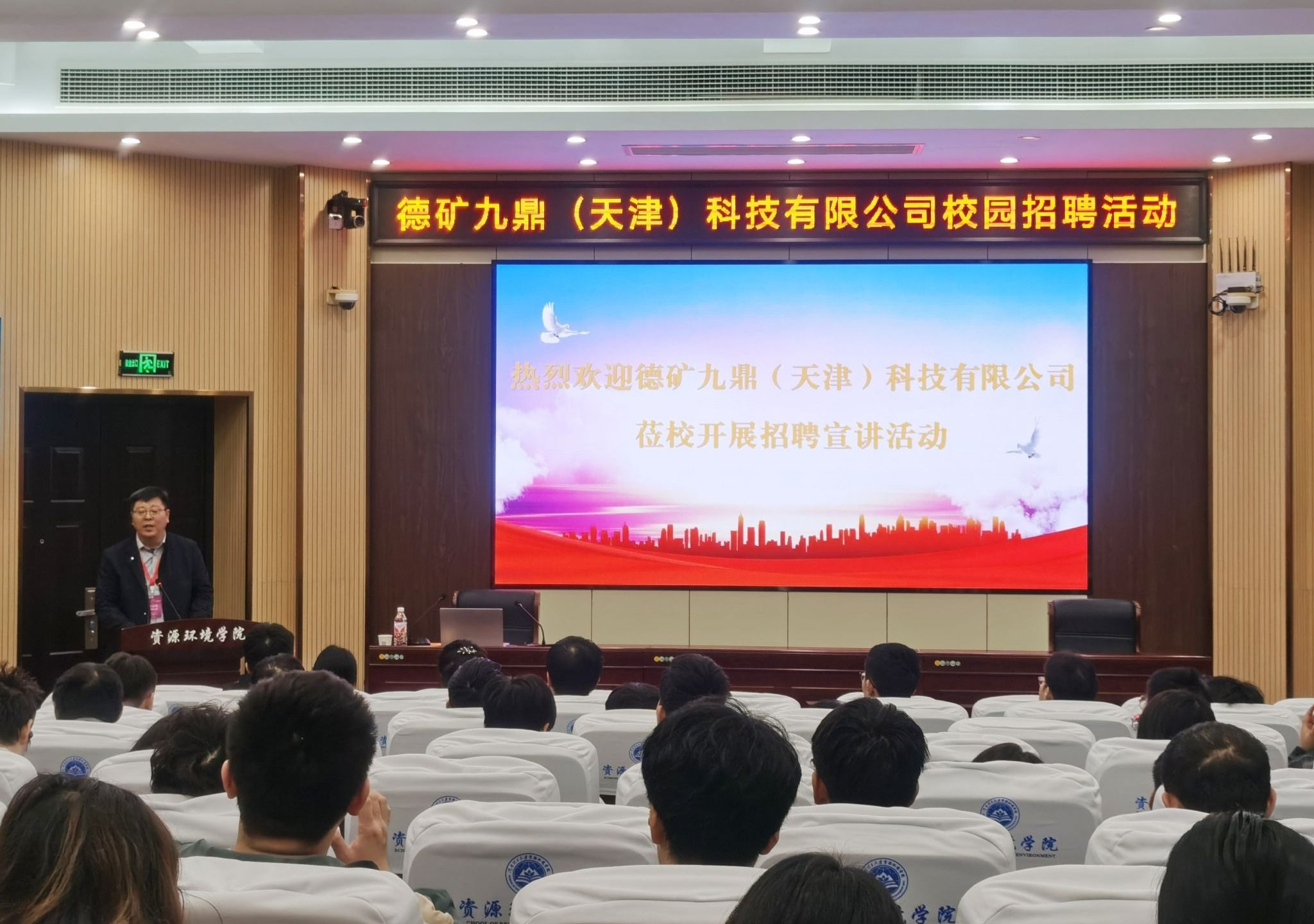 地勘系82级校友、德矿九鼎科技有限公司董事长马桂霞在资环楼第Ⅰ学术报告厅为2025届毕业生作报告和招聘宣讲会。会议由学院副书记孙付伟主持,2025届毕业生代表100余人参加了会议。