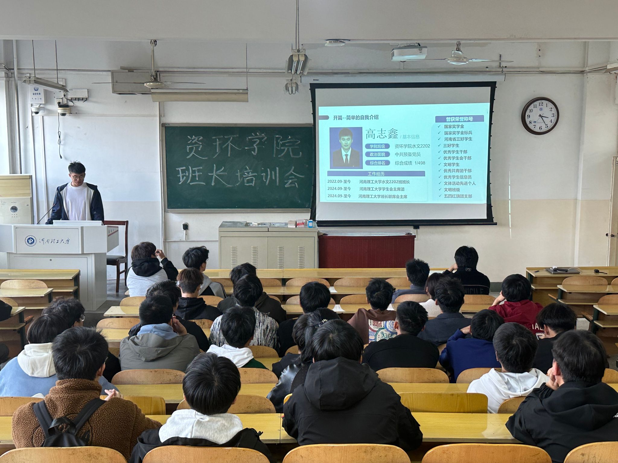 会上,水文2202的班长高志鑫分享了自己的心得。他认为作为班长首先应该享受工作,遇到问题做到“不指责、不抱怨”。其次,要懂得团队合作,不能单打独干。然后,他分享了促进班级学风建设的两种方法:根据需要班长带头设立学习小组、开展学习竞赛等形式,提高学习的积极性;考虑每个人的意见制定班级共同目标,促使全体同学向一个目标积极努力。接下来,来自环境2102的班长牛相宜以生动有趣的形式分享了自己担任班长的故事,展示了丰富多彩的班级活动。从自身经验出发提出了几点建议:一是统筹规划,分工明确;二是善于组织,勤于沟通;三是勇于担责,做好榜样。交流环节,与会班长纷纷就自己在班级管理中遇到的问题和困惑进行了提问,并得到了其他班长的积极回应和宝贵建议。现场氛围热烈,掌声不断。大家纷纷表示,通过这次交流会,不仅收获了许多实用的管理技巧,还结交了新的朋友。收获满满。