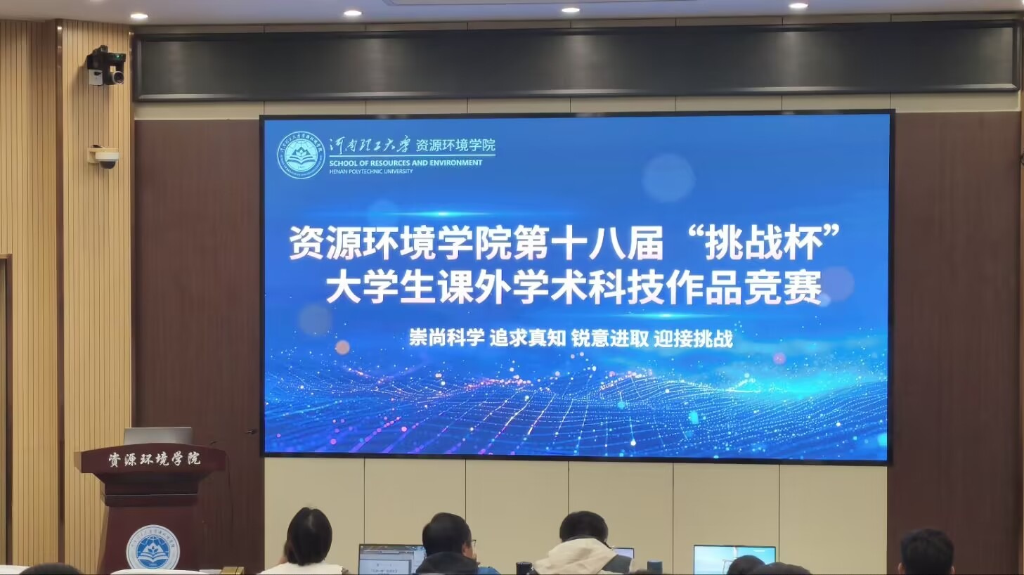 在第Ⅰ学术报告厅举办了第十八届“挑战杯”大学生课外学术科技作品竞赛。竞赛采取线下答辩模式进行,李成杰、姬红英、李建林、杨英、胡芸冰老师担任此次比赛评委。