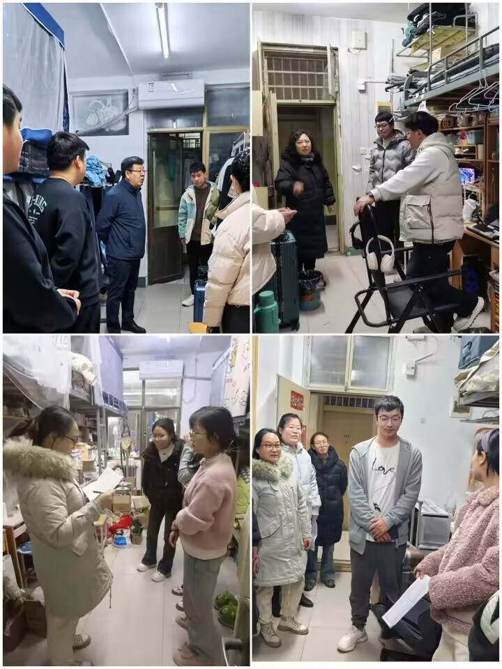走访过程中,老师们分别对本科生和研究生宿舍的卫生状况、用电安全以及是否存在违规电器等情况进行全面排查。期间,老师们与同学们亲切交谈,详细询问同学们的新学期学习规划,并提醒同学们强化安全意识,严格遵守宿舍管理规定,共同维护校园安全。针对检查中发现的个别宿舍卫生死角、电源线使用不规范等问题,老师们现场提出整改意见,并逐一核对宿舍成员到校信息,对因特殊情况暂未返校的学生做好记录并跟进联系。