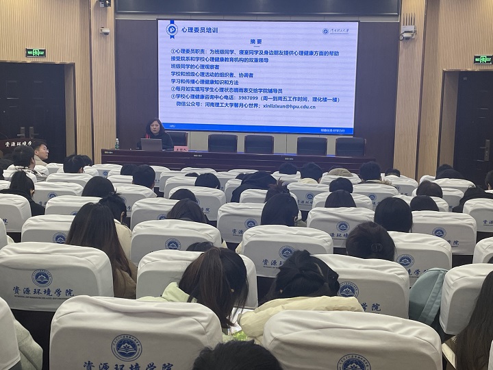 通过心理晴雨表排查反馈,有针对性地对问题学生进行干预,并为心理委员提供专业培训,辅导员王静老师组织了一场心理问题排查与心理委员培训会。