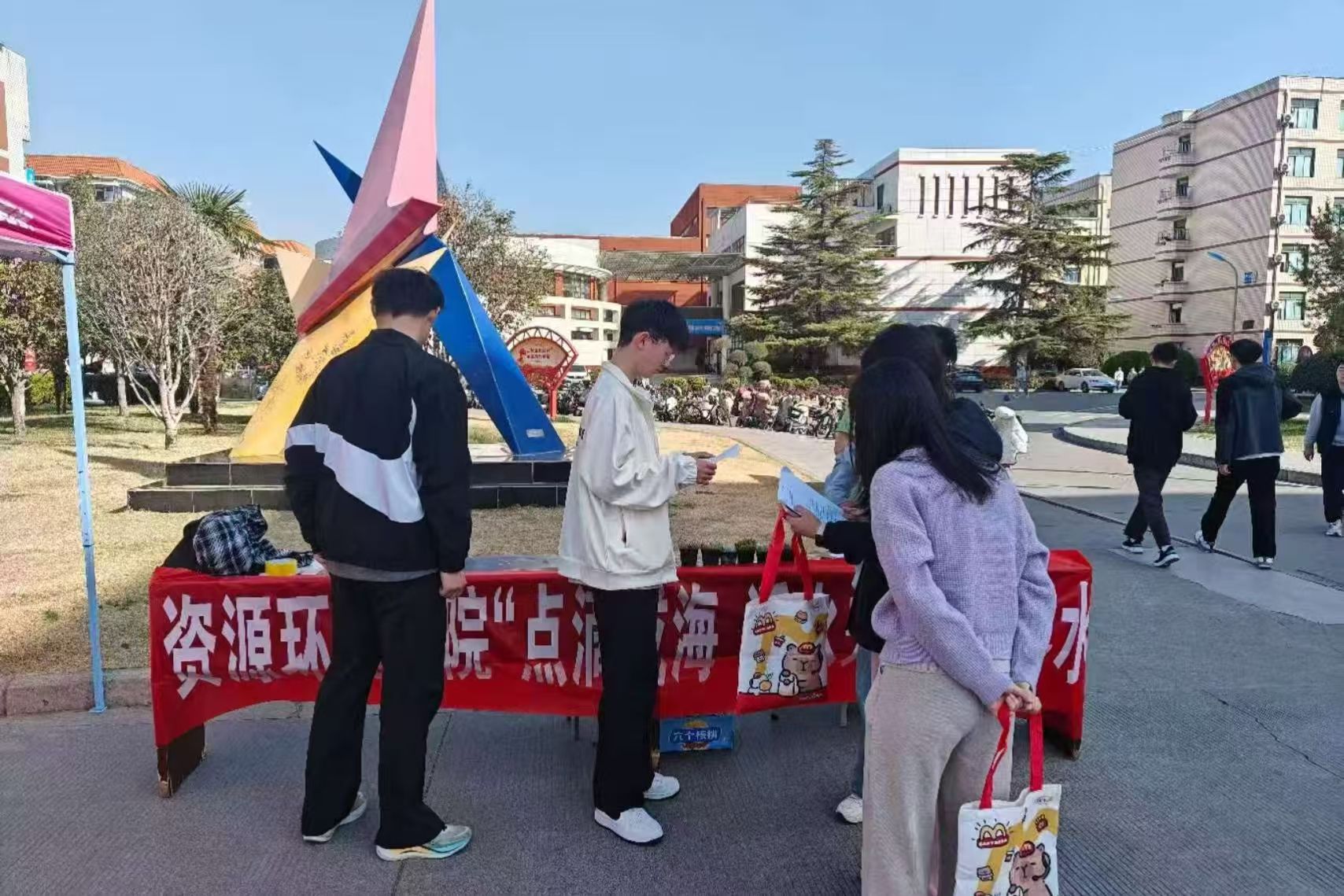 学生会于2025年3月22日在学苑餐厅前广场举办“点滴成海,惜水未来”主题宣传活动。