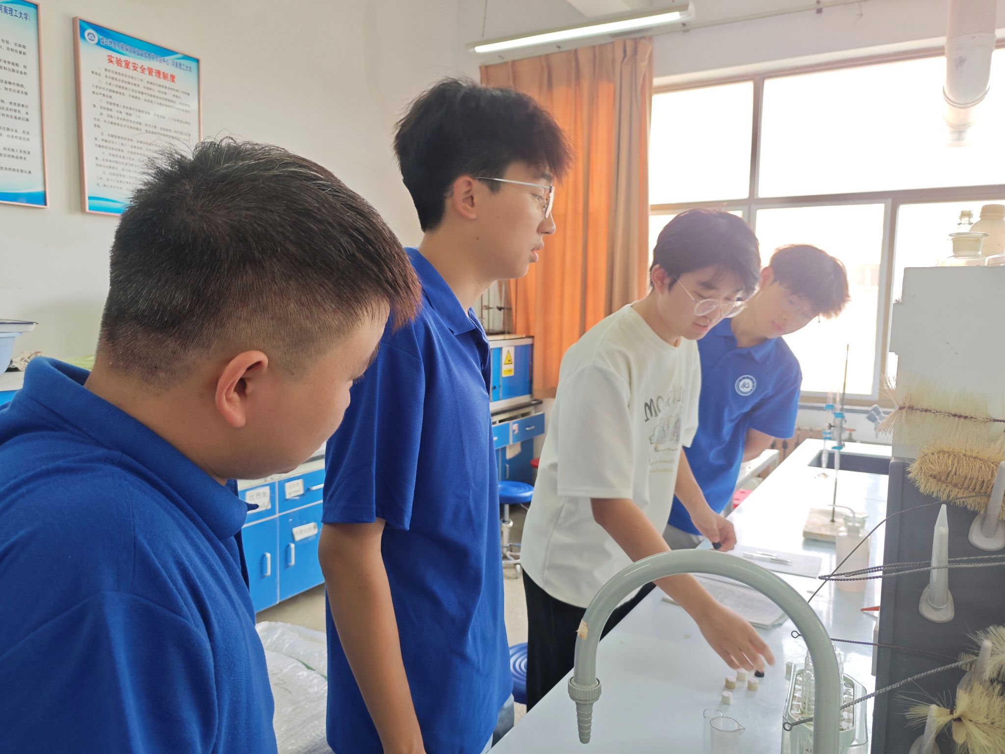的水质检测实验室内,实验组的5名成员正化身为严谨的“水质解码员”,对前一天(7月10日)采集的新河和大沙河多个点位水样展开精密分析。在经验丰富的指导老师和学长协助下,实验室里弥漫着专注的气息。