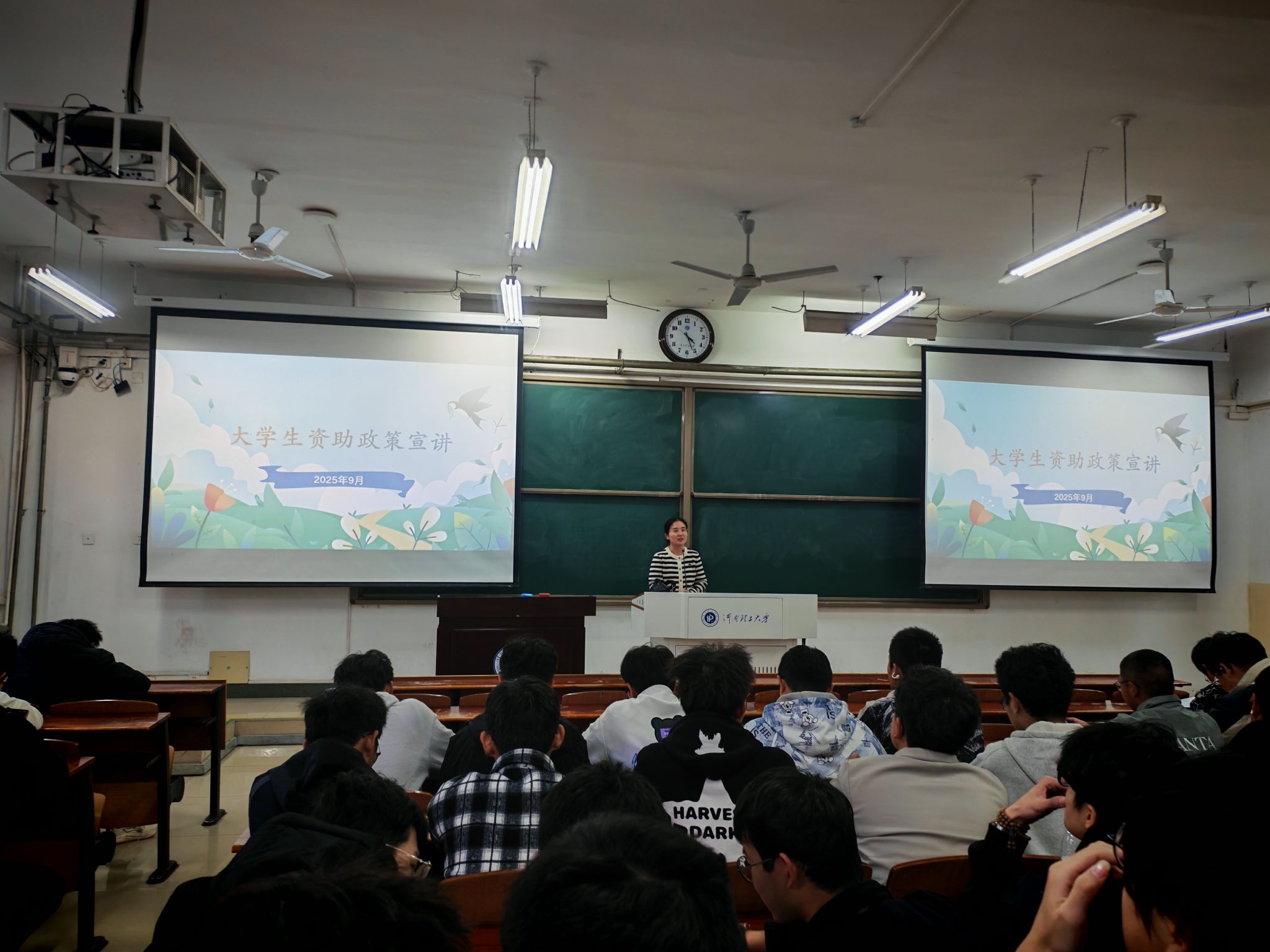 在三号教学楼3101教室组织召开2025级新生资助政策宣讲会。会议由25级辅导员薛梅主持,各班班委及申报贫困资助的学生参加此次会议。