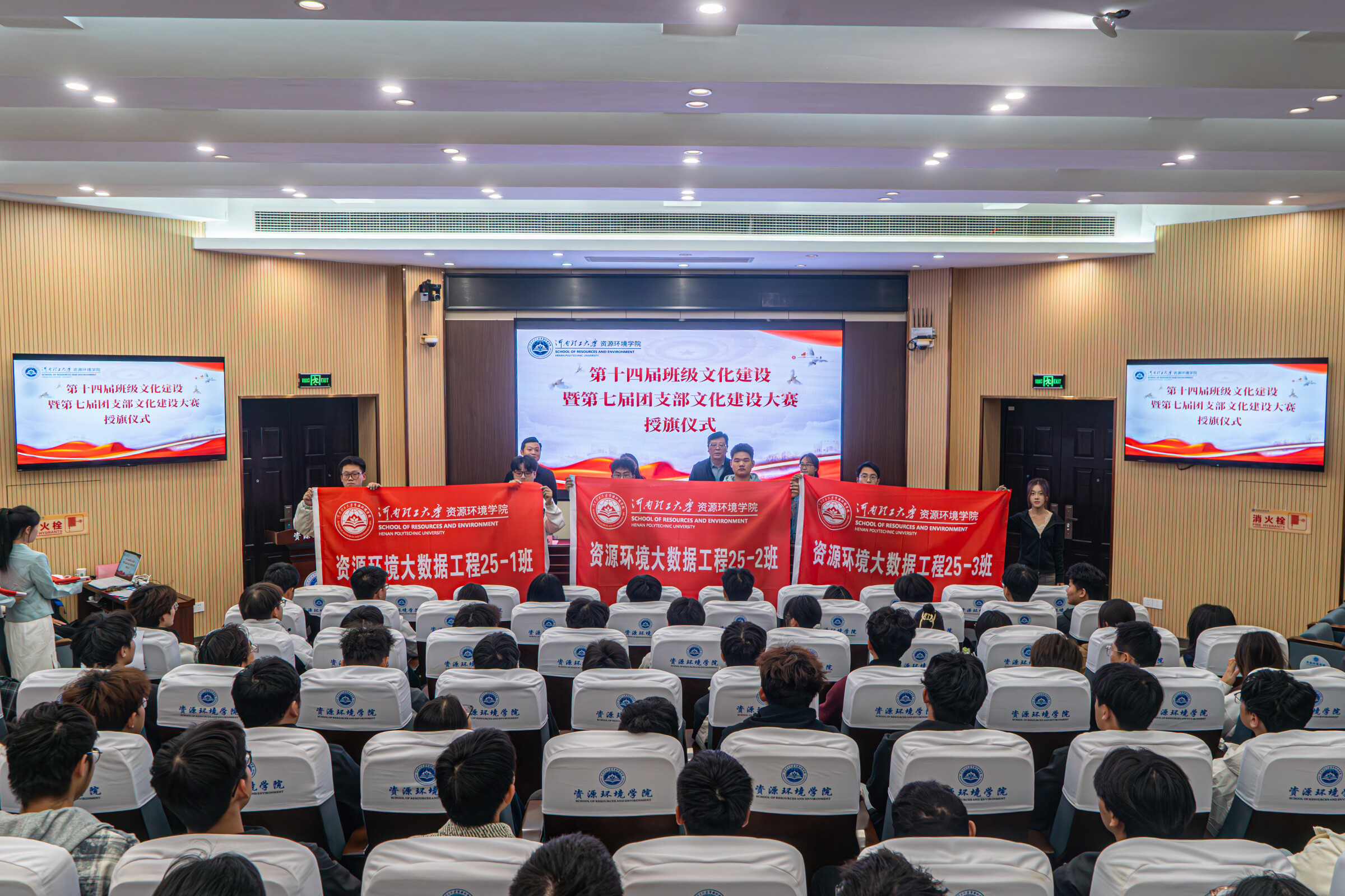 学生会于第I学术报告厅隆重举行第十四届班级文化建设暨第七届团支部文化建设设计大赛授旗仪式。学院团委副书记王梦利主持会议,学院党委副书记孙付伟、学工办主任张娜、2024级辅导员杨澳伟及2025级各班级代表共同参加。