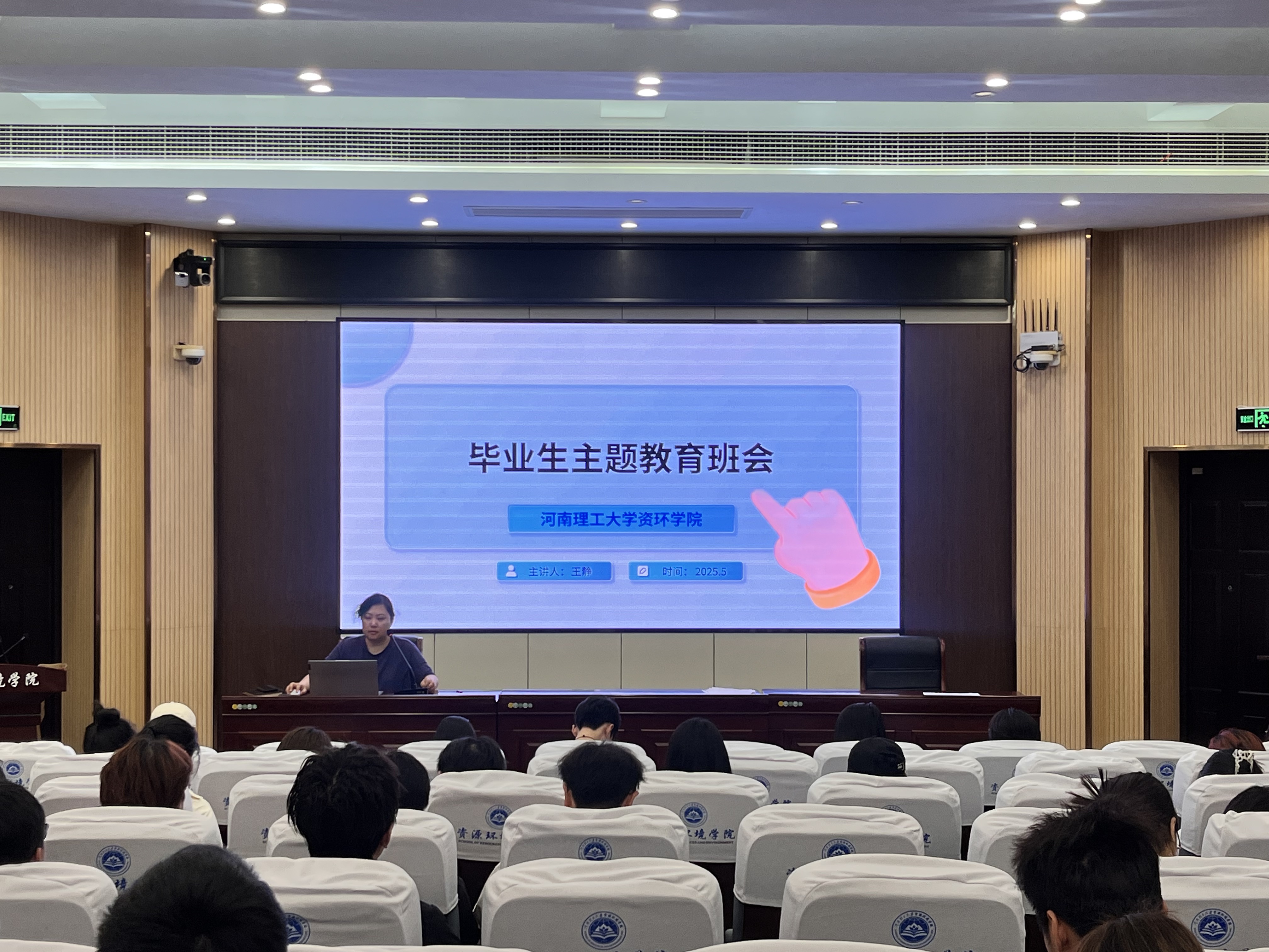 在资环Ⅰ号学术报告厅召开2025届毕业生主题教育班会,2021级辅导员王静担任主讲,全体毕业生通过“线下 + 线上”同步参与。班会围绕“明德立志・行稳致远”核心,构建“八维赋能”立体化思政教育体系,为毕业生筑牢思想堤坝。