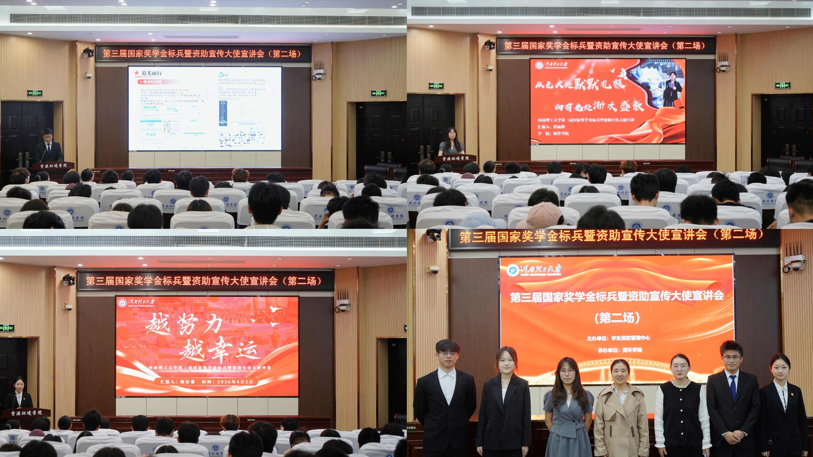 为全面推进资助育人工作,充分发挥国家奖学金标兵的示范引领作用,4月17日下午,由学校学生资助管理中心主办、资环学院承办的第三届“国家奖学金标兵暨资助宣传大使”宣讲会(第二场)在资环楼第I学术报告厅顺利举行。