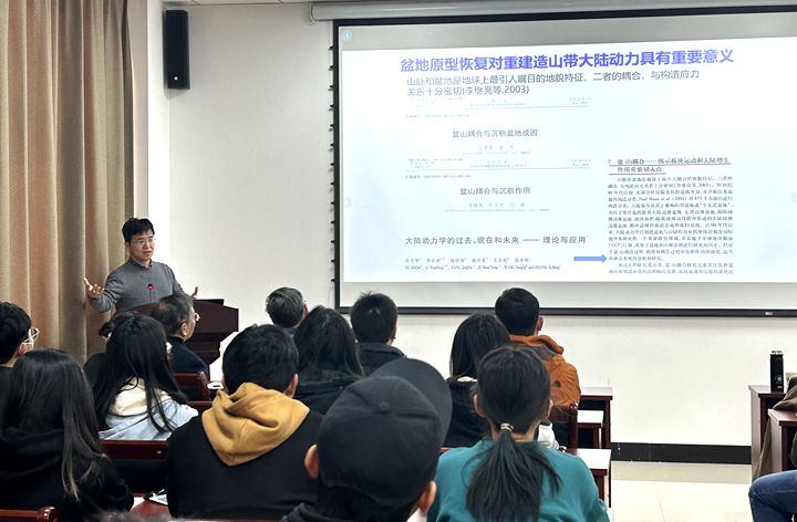 国家重点实验大楼学术报告厅分别作了题为《超大陆裂解与中国大规模成锰作用的耦合关系探讨》和《青藏高原沉积大地构造演化研究进展》的学术报告。学院沉积地质学的相关教师及研究生参加了学术交流。学术交流会由院长齐永安主持。